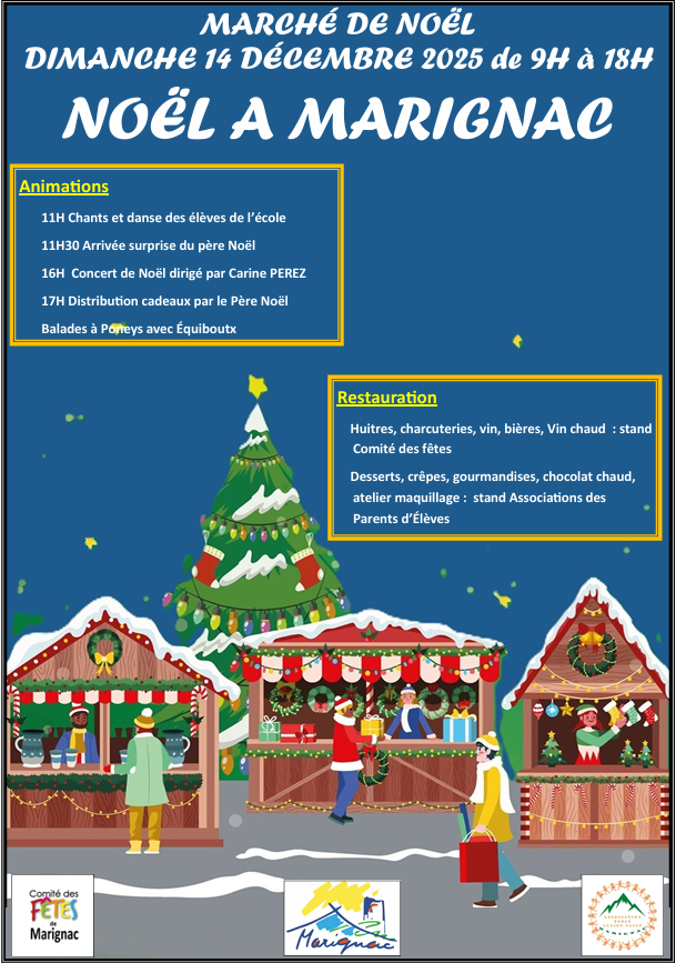 Marché de Noel à Marignac ...11 Novembre9 novembre 2025Encombrants9 novembre 2025Grana Castanhada9 novembre 2025Théatre le 02 novembre27 octobre 2025Halloween à Marignac27 octobre 2025Soirée antillaise20 octobre 2025