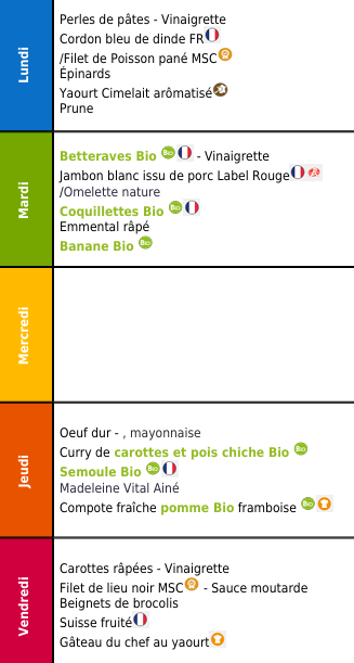 Menu cantine du 22 au 29 septembre